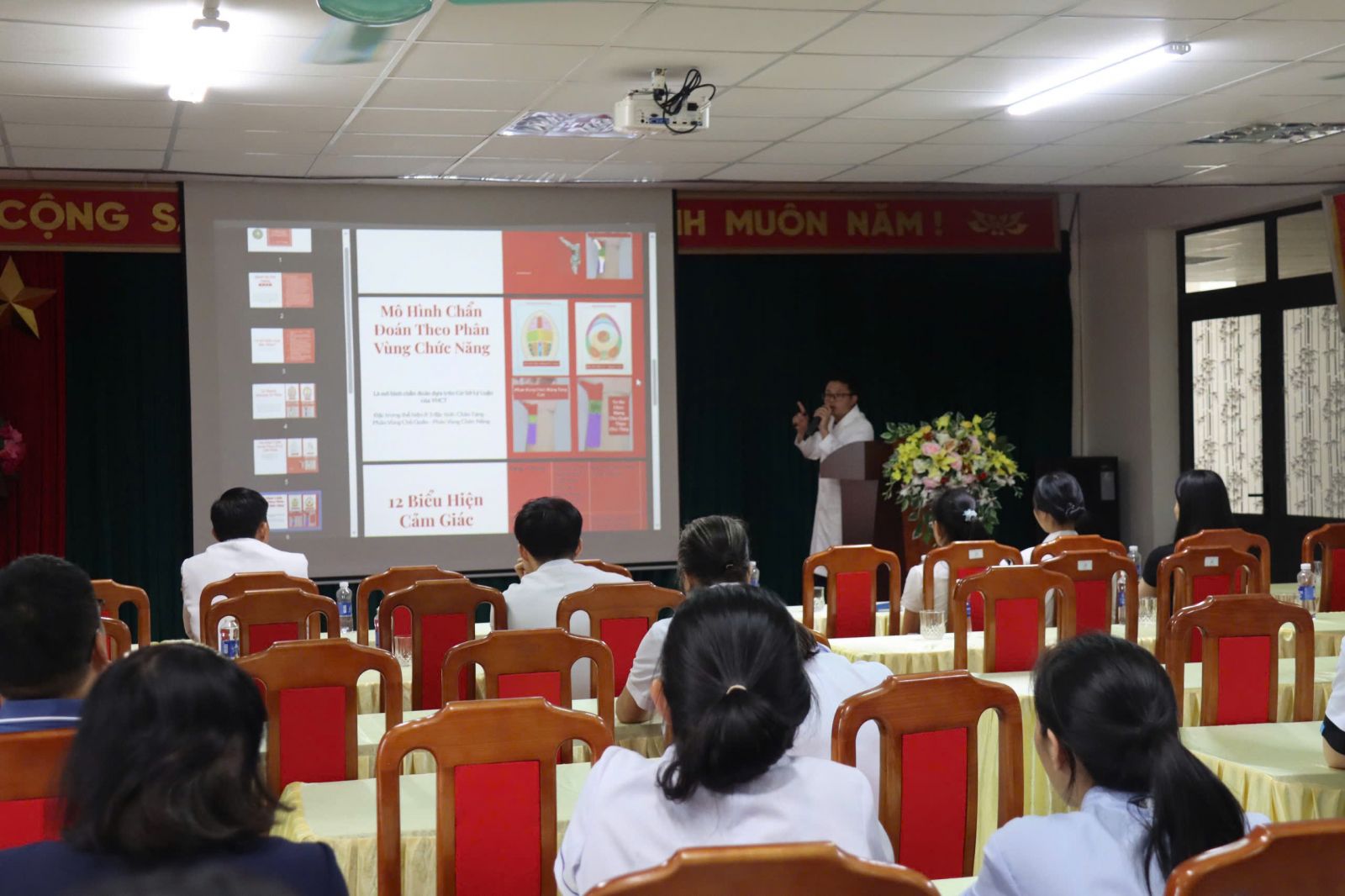 Cũng trong ngày, bệnh viện tổ chức Tập huấn chuyên đề “Mạch chẩn – Thiệt chẩn và ứng dụng lâm sàng của phần vùng chức năng tạng Can. Khí công đạo dẫn trong bảo vệ sức khỏe cho thầy thuốc Đông y”. Hai nội dung được chia sẻ bởi Ths.Bs Ngô Tiến Hưởng và Võ sư Nguyễn Nhật Quang. Chương trình giúp đội ngũ y, bác sĩ nâng cao kỹ năng chẩn đoán qua mạch, lưỡi, ứng dụng lâm sàng trong khám chữa bệnh, đồng thời hướng dẫn các phương pháp khí công đạo dẫn giúp bảo vệ và tăng cường sức khỏe cho bác sỹ, điều dưỡng, kỹ thuật viên tại Bệnh viện.
