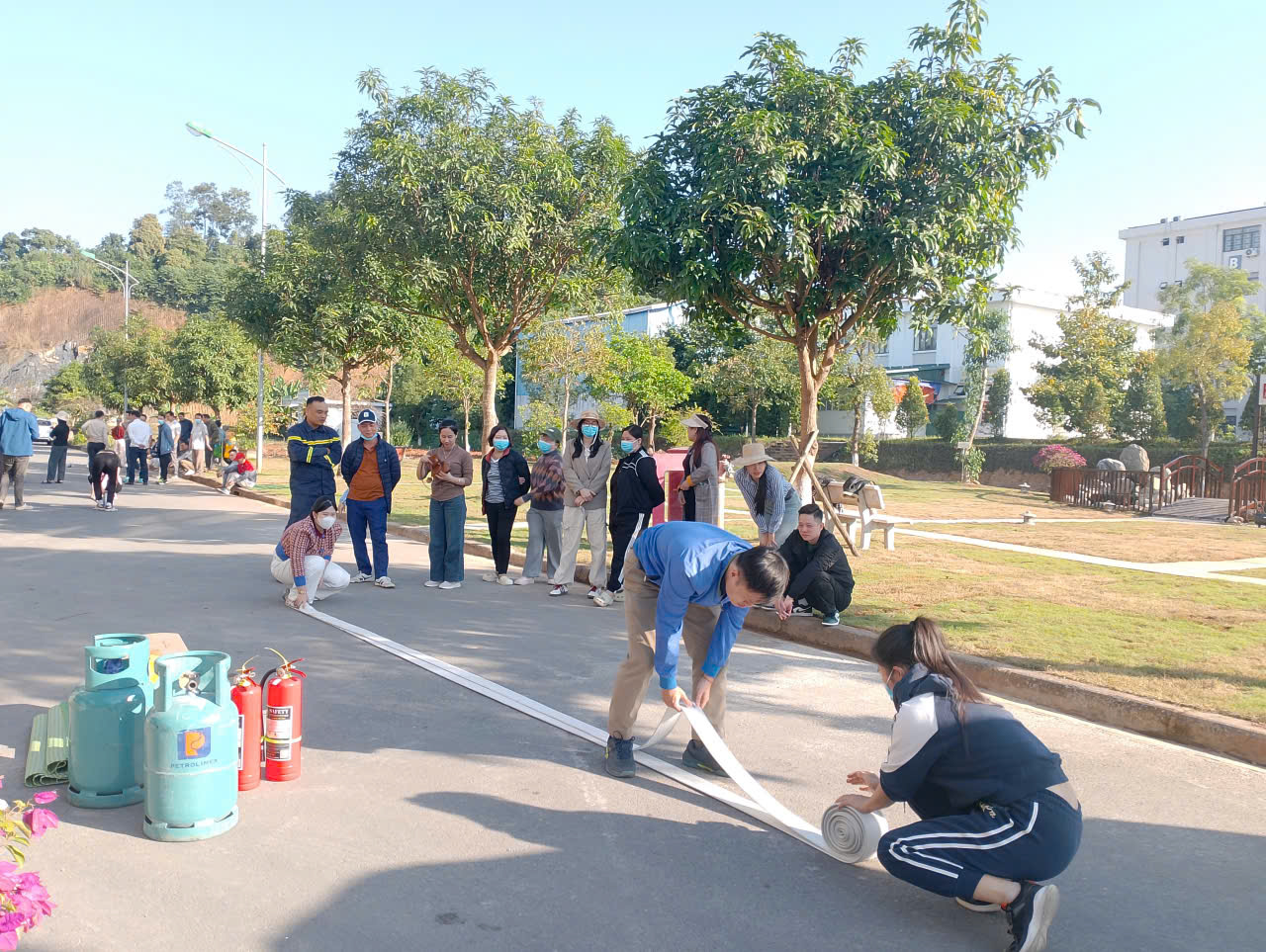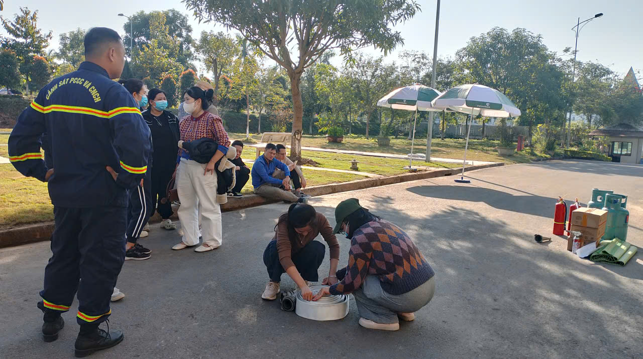 Lớp huấn luyện có sự tham gia của lực lượng PCCC cơ sở Bệnh viện Y học cổ truyền, Bệnh viện Phục hồi chức năng, và Bệnh viện Nội tiết tỉnh Lào Cai. Nội dung tập huấn bao gồm: