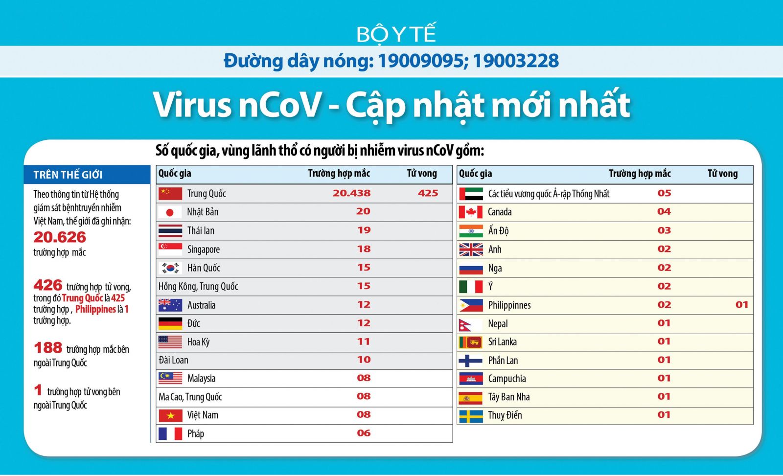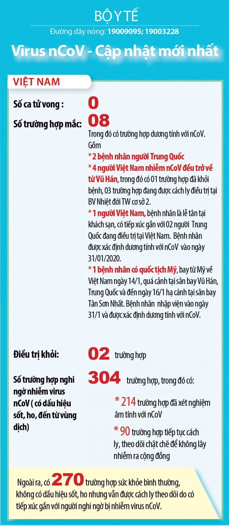 Cập nhập thông tin về Virus nCoV đến 07h:00 ngày 04/02/2020 (Nguồn Bộ Y tế)