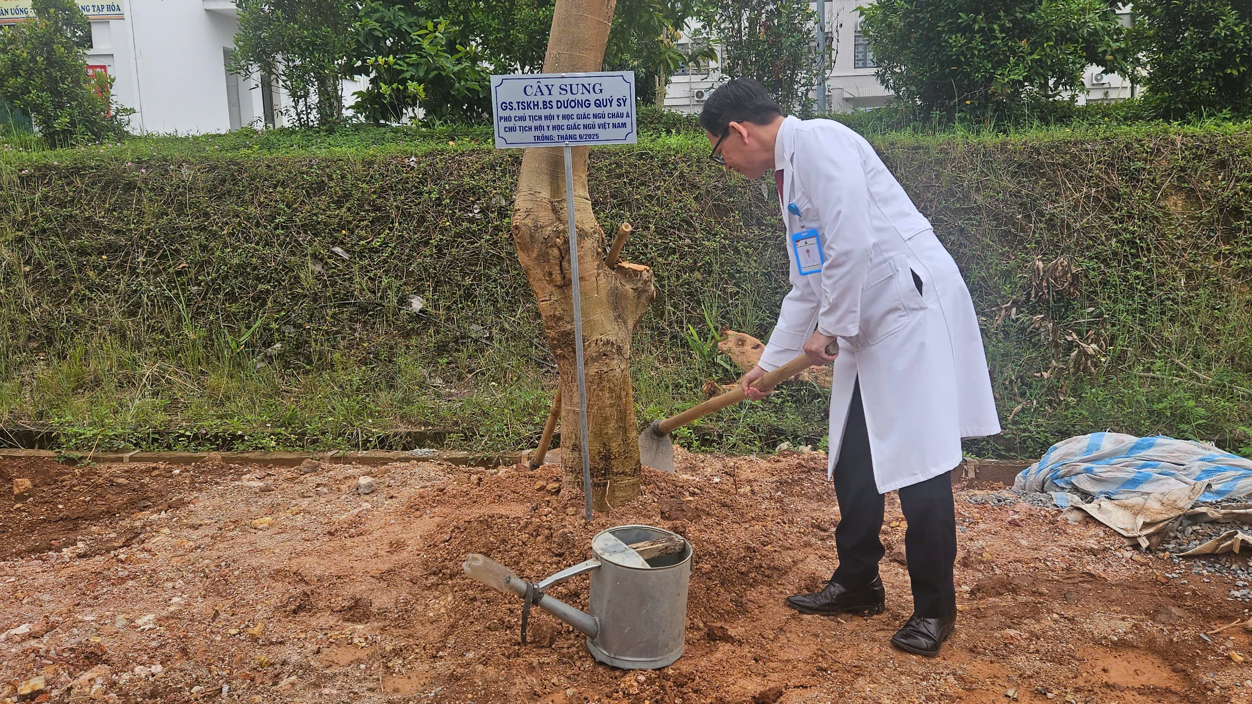 Nhân dịp này, Giáo sư đã trồng cây lưu niệm tại khuôn viên Bệnh viện – hoạt động mang ý nghĩa biểu trưng cho sự gắn kết, hợp tác lâu dài và phát triển bền vững giữa Hội Y học giấc ngủ Việt Nam với Bệnh viện Y học cổ truyền tỉnh Lào Cai.