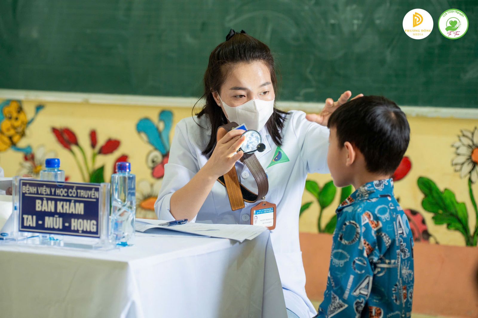 Tại chương trình, Đoàn công tác Bệnh viện Y học cổ truyền tỉnh Lào Cai đảm nhiệm 02 bàn khám chuyên khoa Mắt và Tai Mũi Họng, trực tiếp thăm khám cho 220 cháu học sinh.