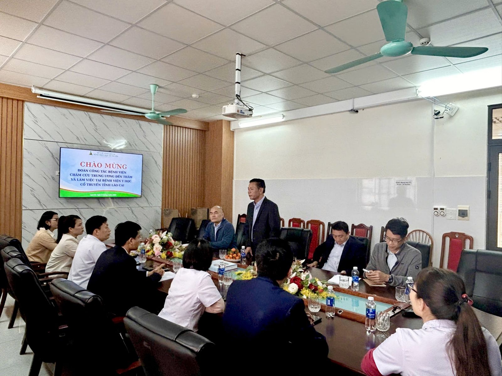 PGS.TS Trần Văn Thanh - Giám đốc Bệnh viện Châm cứu Trung ương thăm và làm việc tại Bệnh viện Y học cổ truyền tỉnh Lào Cai.